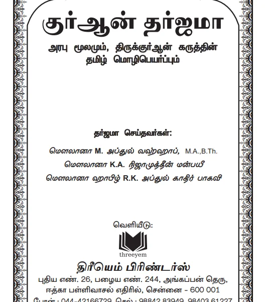 Quran Tharjama is a comprehensive translation of the Quran, crafted to make the divine messages accessible and understandable for Tamil-speaking readers. This edition presents the original Arabic text alongside precise Tamil translations, offering clarity and insight into each verse’s meanings. Ideal for those seeking a deeper connection with the Quran, Quran Tharjama helps readers reflect on its teachings, guiding them in their spiritual journey.